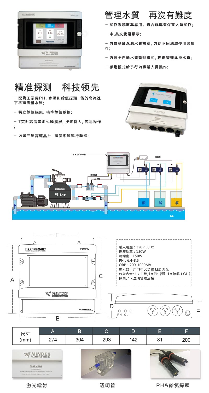 Электронный монитор качества воды в Австралии MINDER MD4000 оснащен 7 -дюймовым сенсорным экраном высокого уровня