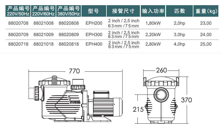 Yiwanshi Water Pump Sump для бассейна Кружный насос Высокопроизводительный насос Eph Circle Emaux насос