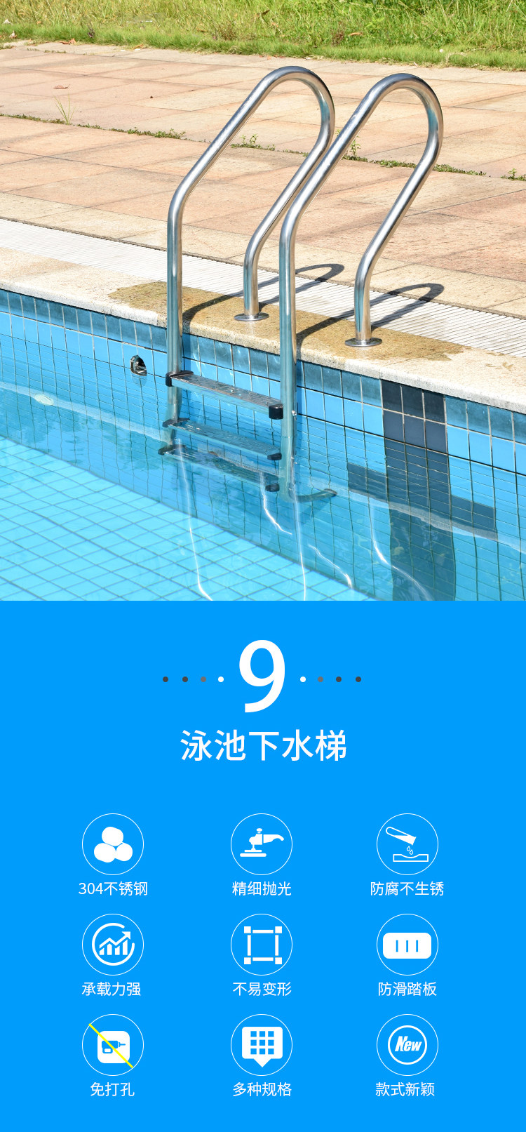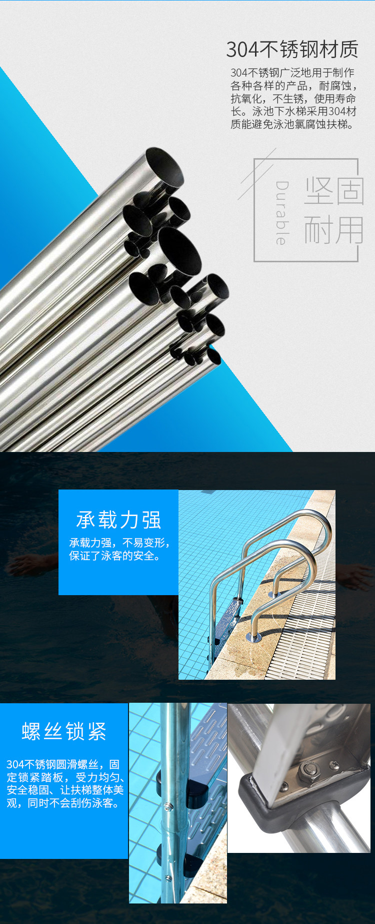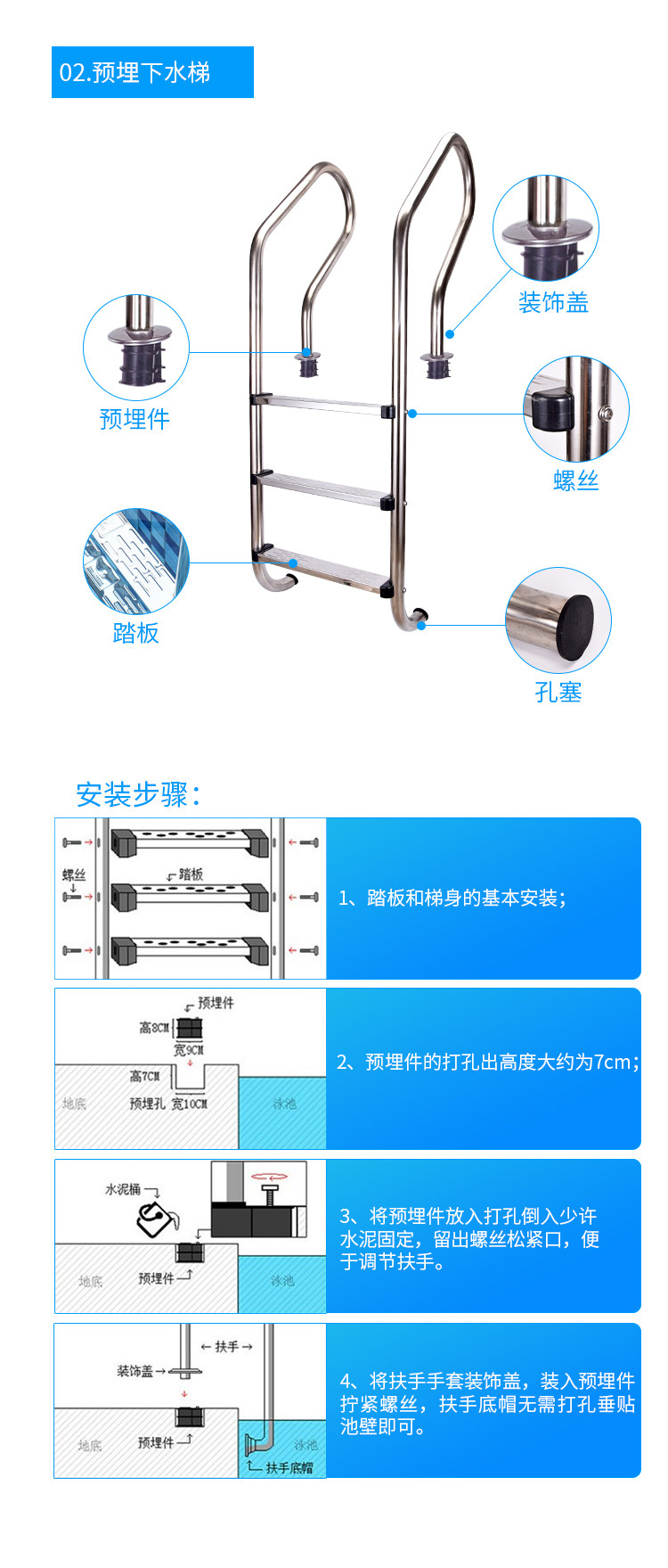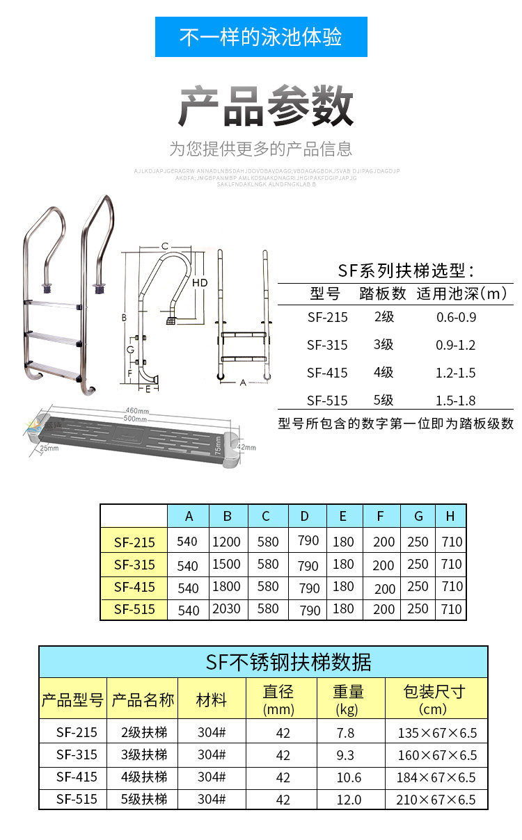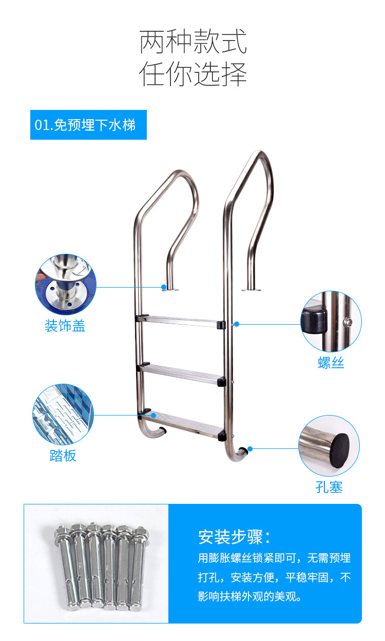 Бассейн, лестница из нержавеющей стали, педали, оборудование, увеличенная толщина