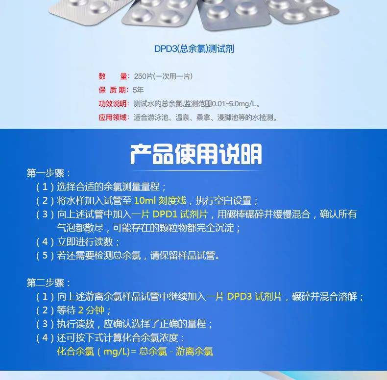 | Цвет: | Общий остаточный хлор DPD3 (250 таблетки/коробка), Общий остаточный хлор DPD3 (100 таблеток/сумка) |