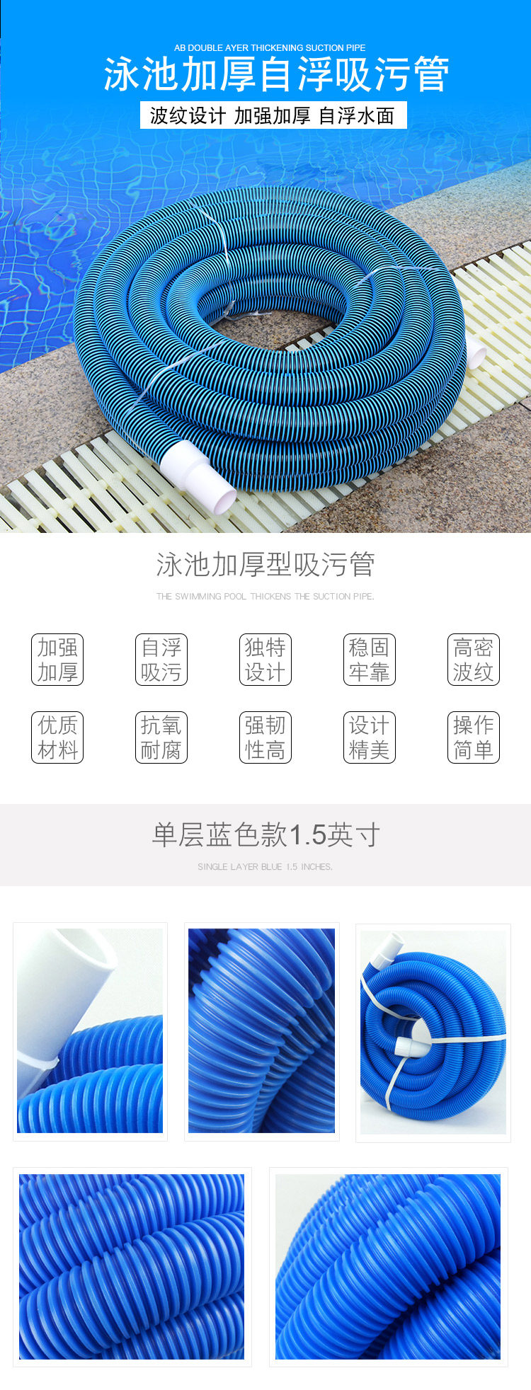 Бассейн AB Двойной слой сгущенной 30 -метровой воды под водой вакуумной трубы 1,5/2 дюйма всасывающая трубка контейнера