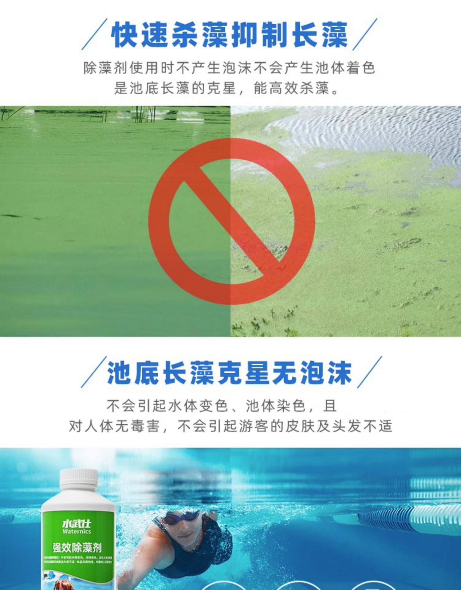 水武仕 Альгицид для бассейна, бассейн становится зеленым, альгицид для удаления мха, обесцвечивание ванны, экологически чистая очистка воды