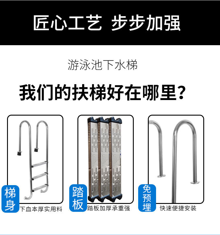 Нескользящий бассейн, лестница из нержавеющей стали, увеличенная толщина