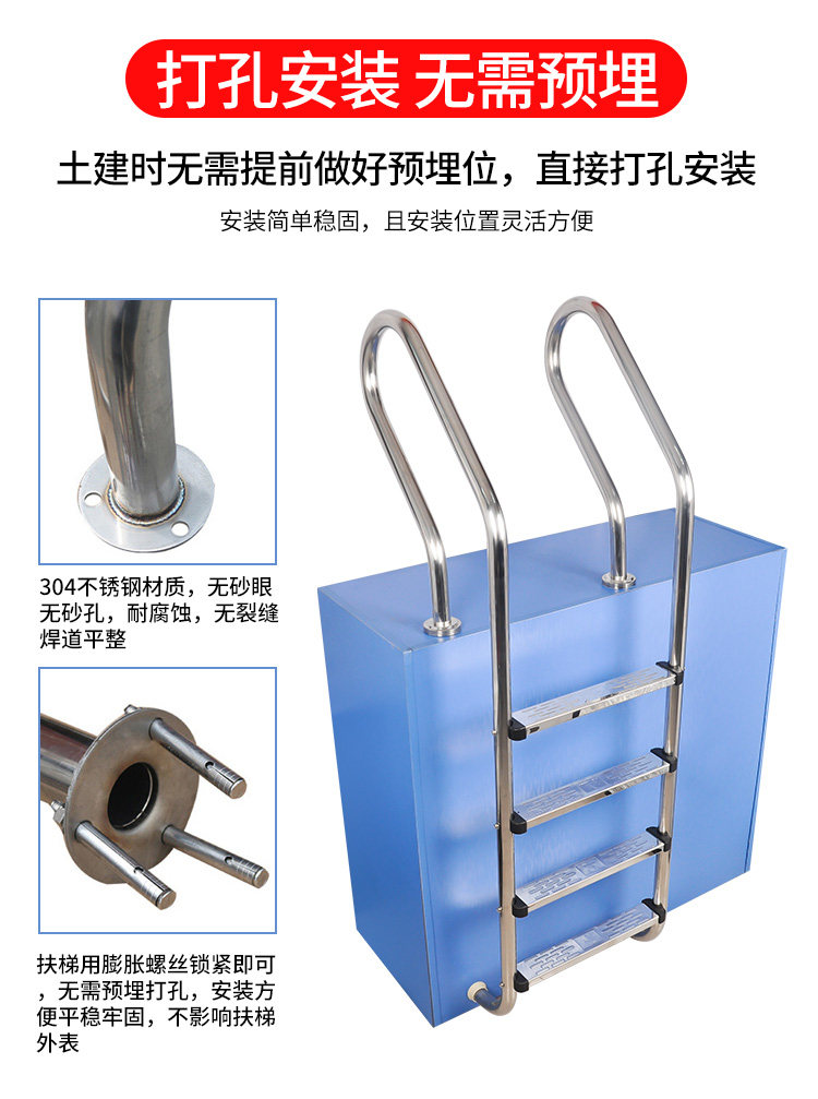 Бассейн, безопасные педали из нержавеющей стали, лестница для коммерческого использования, увеличенная толщина