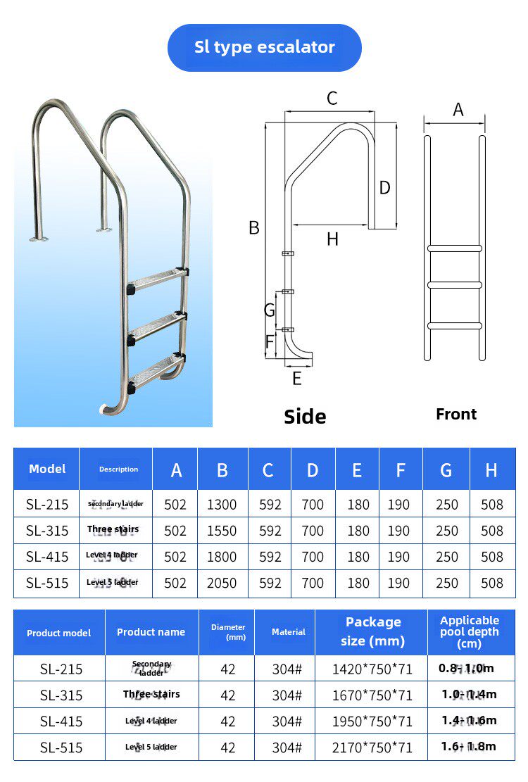 Бассейн, безопасные педали из нержавеющей стали для домашнего использования, трубка, увеличенная толщина