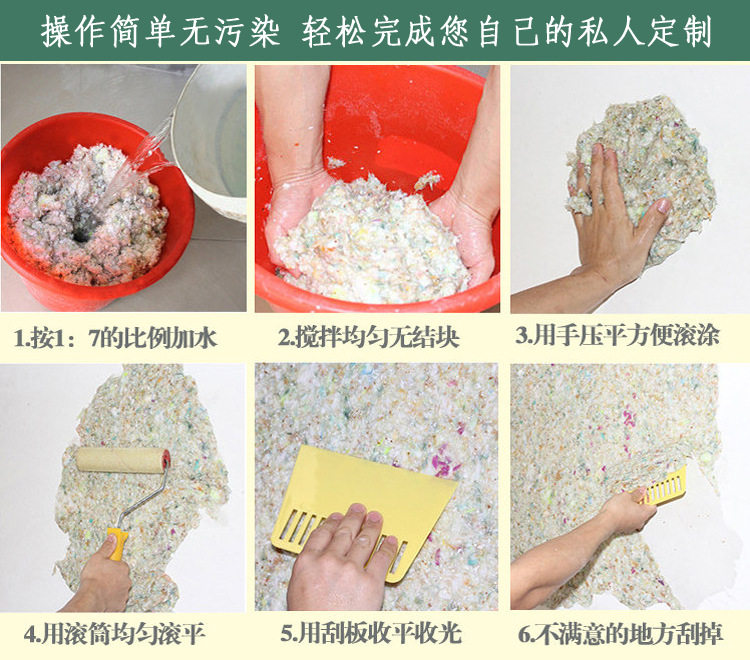 Равномерно перемешайте и закатите стену.Новички также могут работать.Этот продукт имеет хорошую текстуру стены, не сравнивайте его дешево с внешними,