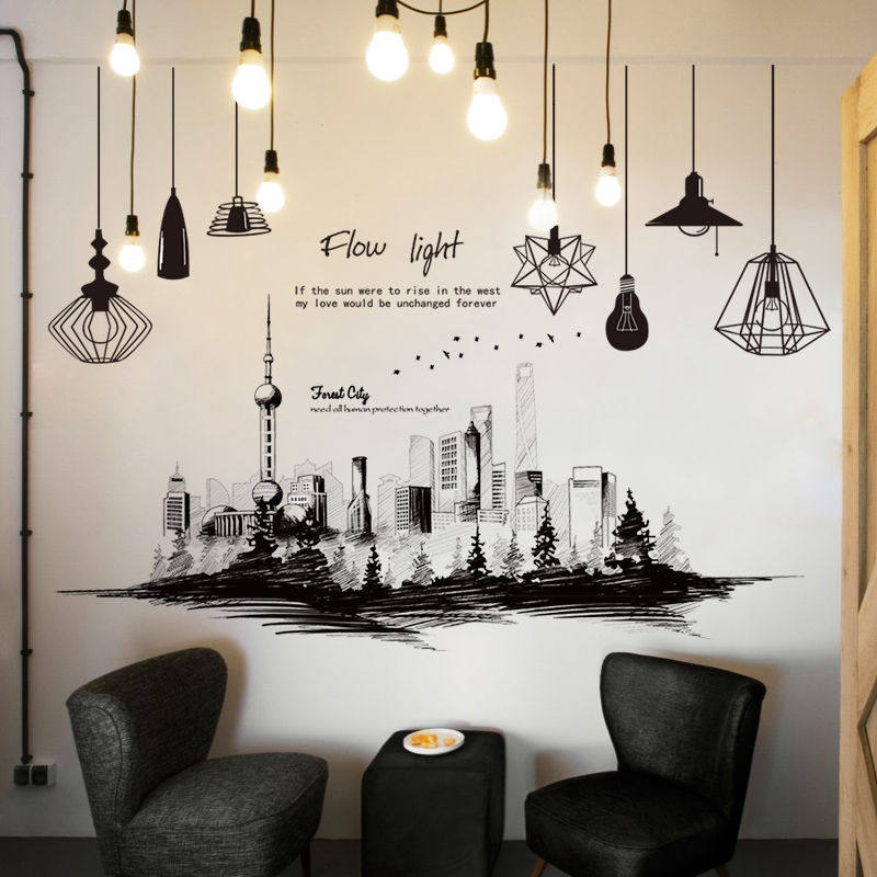 Наклейка на стену, наклейки, городские здания, настенный самоклеющийся модный декор, постер, простой и элегантный дизайн