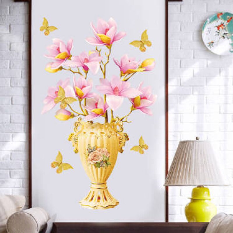 3D Трехмерная настенная наклейка цветочная бутылка лотос настенная бумага сами -стиль китайская спальня гостиная гостиная