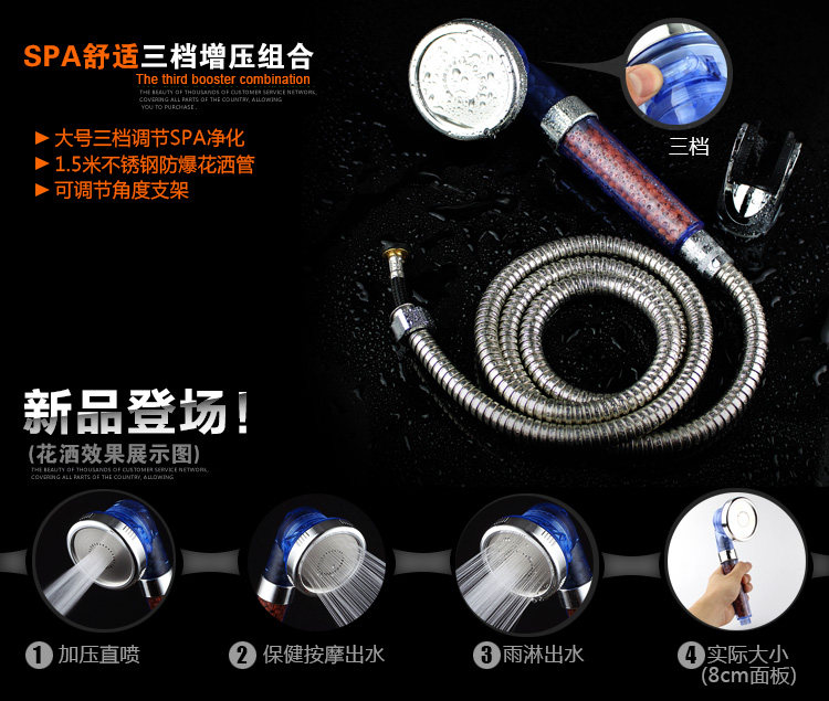 Три -скорость с наддувом спа -салон для душа душевой фильтр для душевого фильтра очистка ванной комнаты Негативная ионная вода.