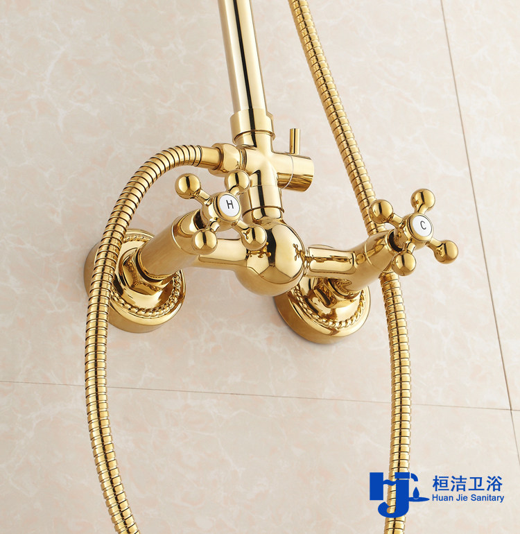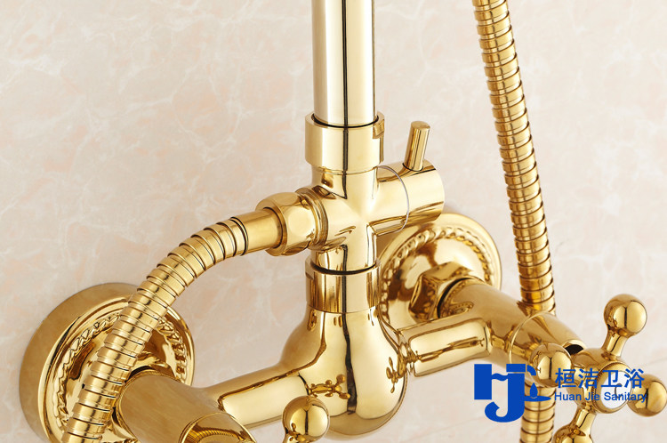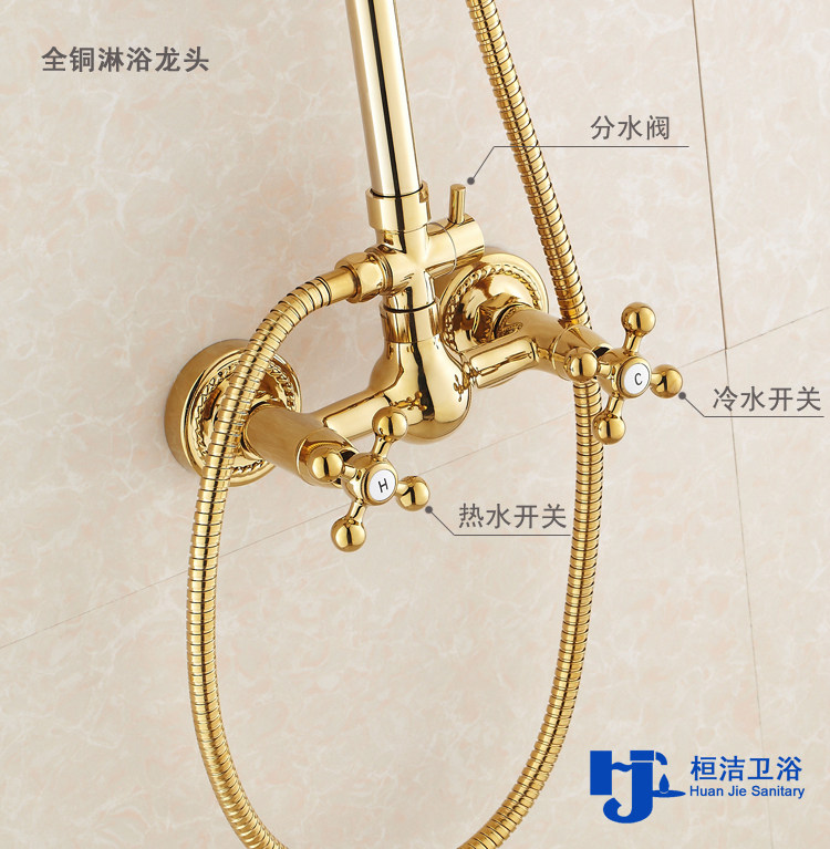 桓洁 Golden All -Bronze душ набор европейского в стиле ванной комнаты с смешанным водяным клапаном горячий и холодный душ