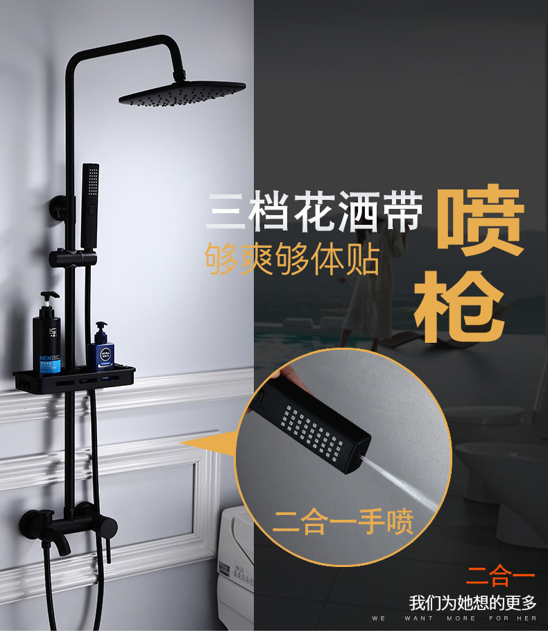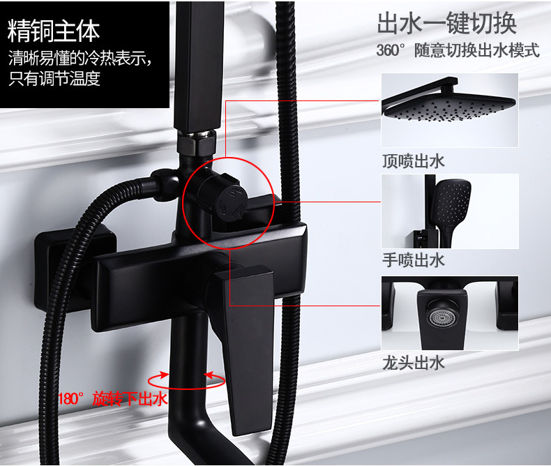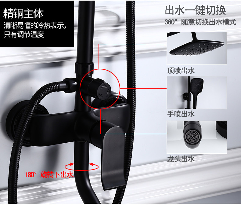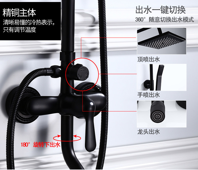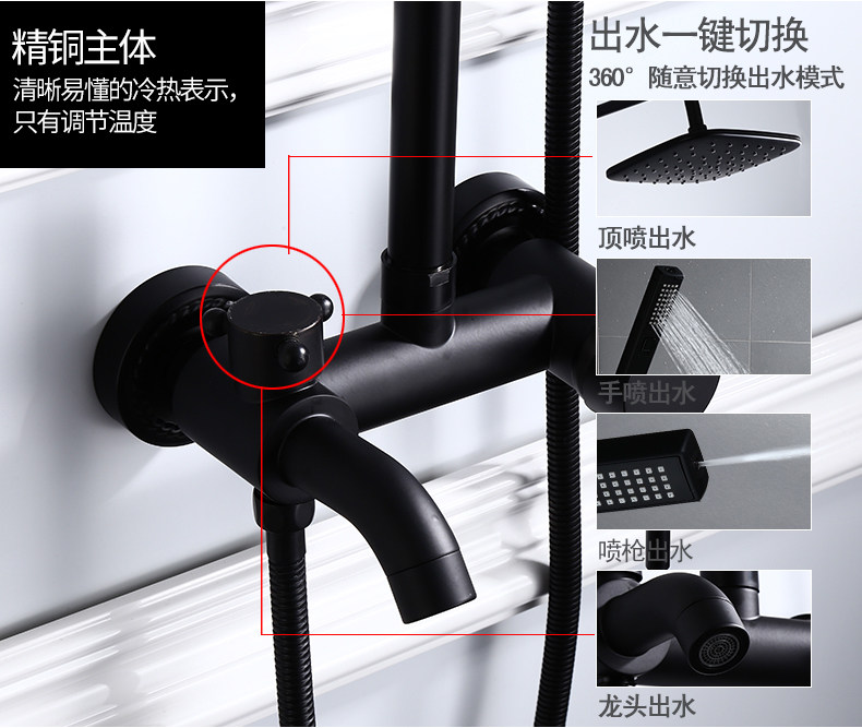 Черный домохозяйство с наддувным душевым костюмом в европейском в стиле комнаты для ванной комнаты купают все бронзовое водяное кран Постоянное температурный душ душ душ