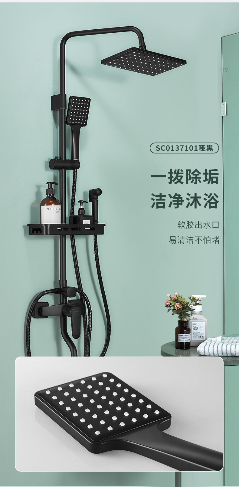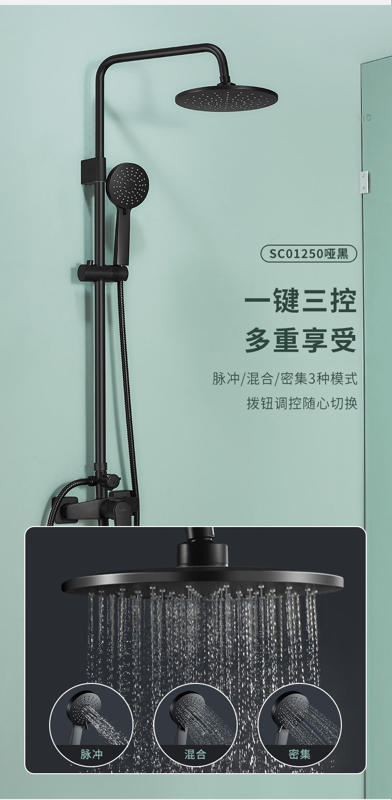 Carba Black Sweep Square Set Set Постоянный кнопку температуры ванная комната ванная комната дома с нагнетательной ванной комнатой с наддувом.
