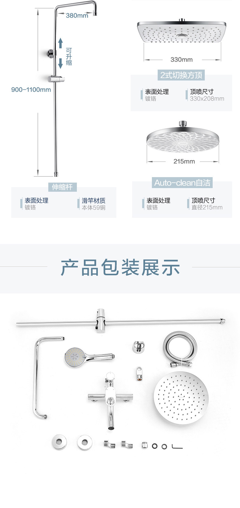 - Жесткая связь+телескопический стержень+250 мм из нержавеющей стали круглый верхний спрей
