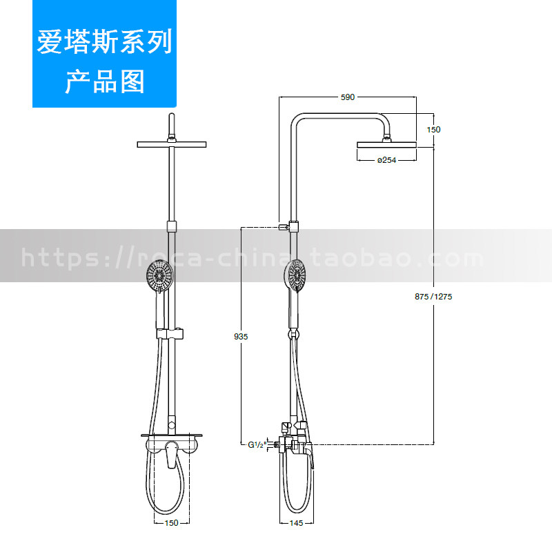 Musician Roca Eutas висящая стена -стиль душевой столб душевой душевой столб 5A9A90C0N Круглые большие выстрелы могут быть отрегулированы высотой