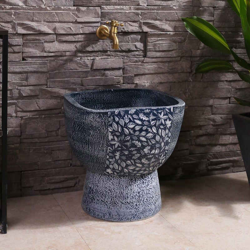 Сине-белая керамическая антикварная уличная круглая швабра, маленький бассейн для домашнего использования
