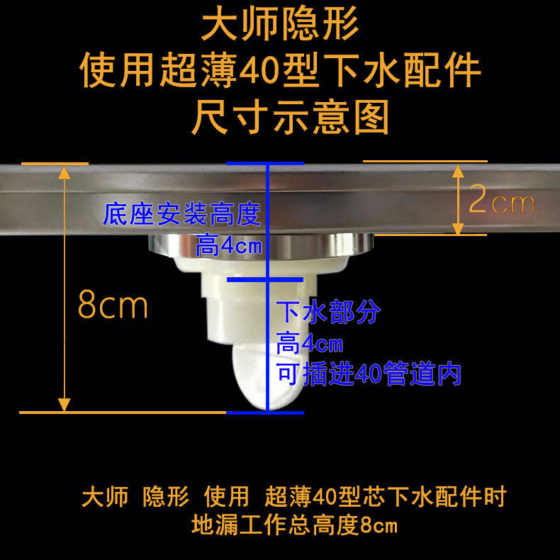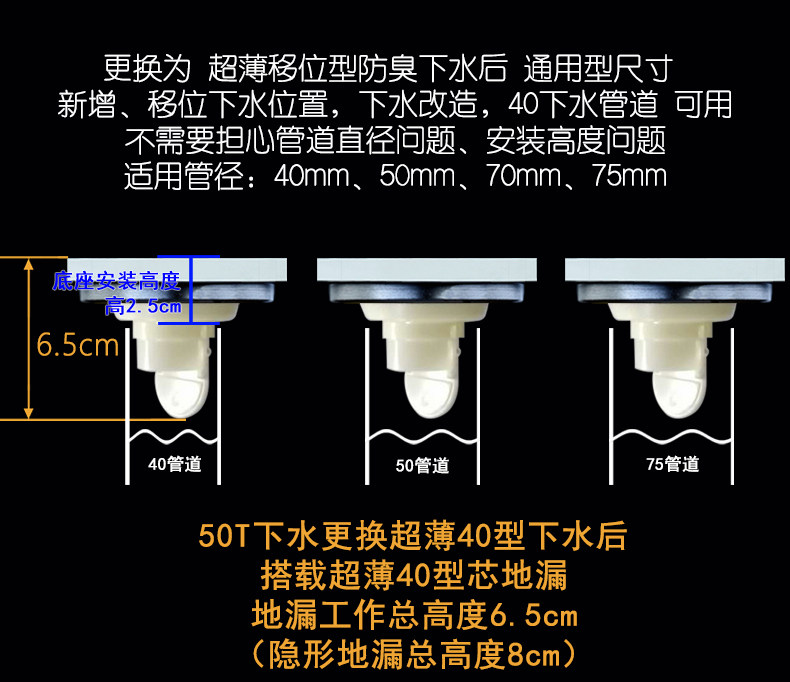 Измените общую высоту дренажа пола, сделайте общую высоту короче, так что слив пола можно установить и использовать в положении смещения и преобразования воды или 40 водопроводных труб.