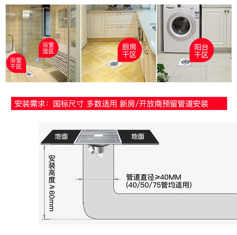 Подводная лоточка напольного набора для медного хромированного хромированного душевого душевого стиральной машины Пропах против статического дренажа на полу 40 этаж Ультра -тонкий дренаж пола