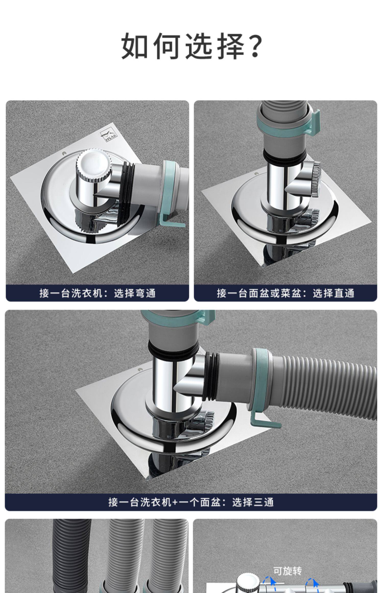 Кабер -стиральная машина пола дренажная дренажная труба под водой дезодоризация и анти -прямая, противоположная, двухцелевая крышка ванной комнаты