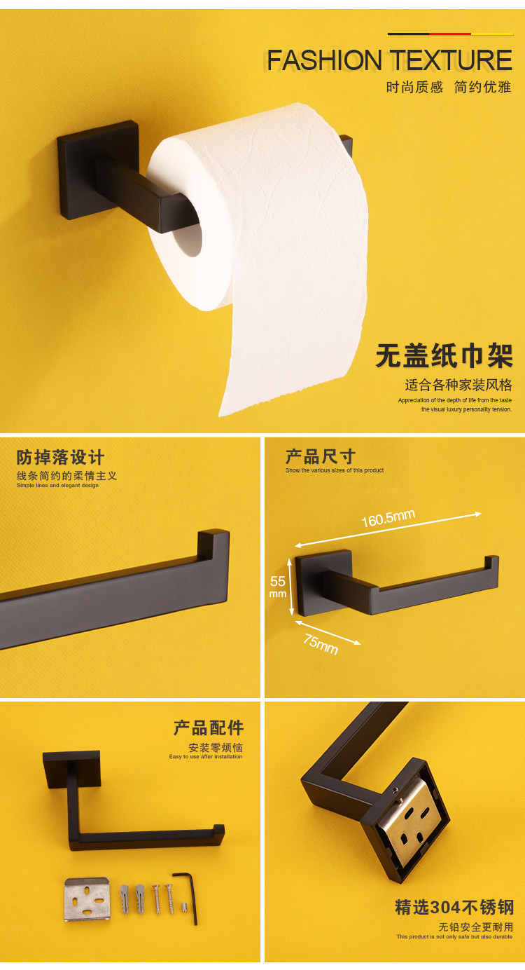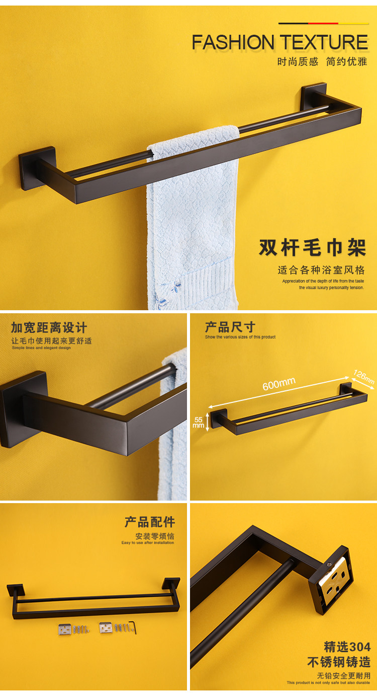 Черное банное полотенце из нержавеющей стали, подвеска, комплект, Германия, нержавеющая сталь AISI 304