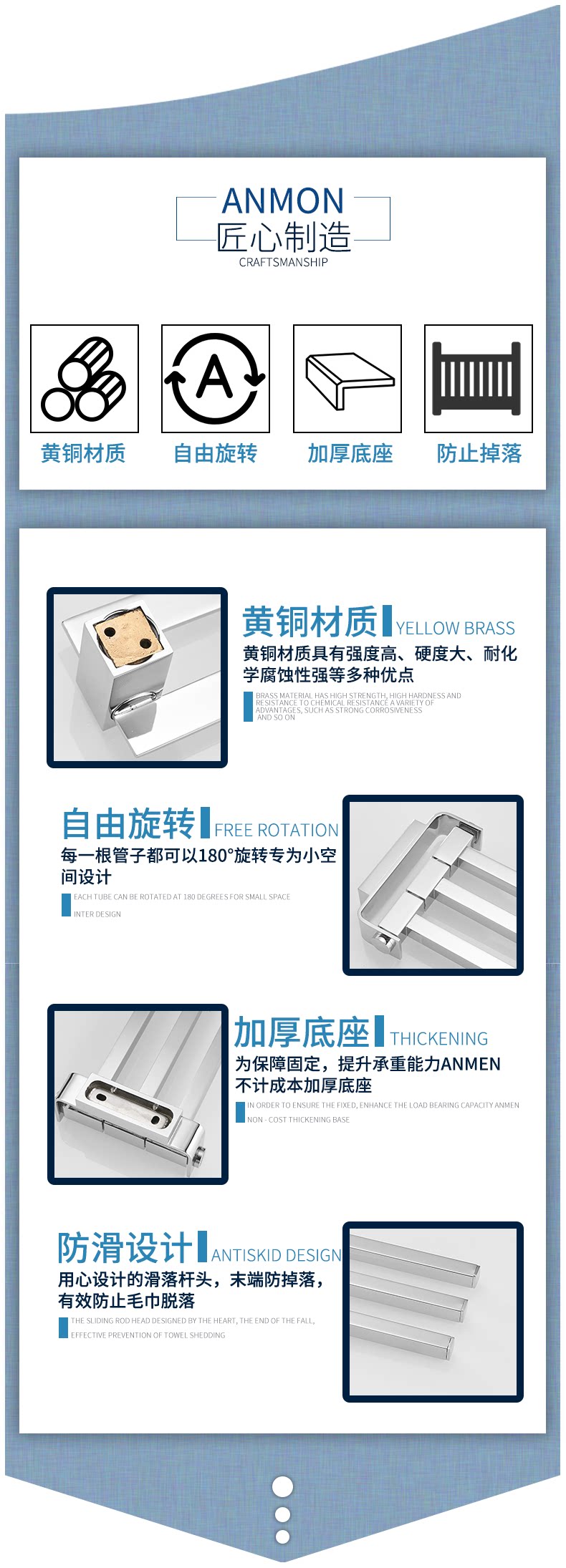 Anmon Гигиеническая медная подвеска, банное полотенце, легкий роскошный стиль