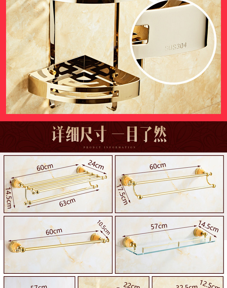 Подвеска из нержавеющей стали, комплект, золотое банное полотенце из нефрита, европейский стиль