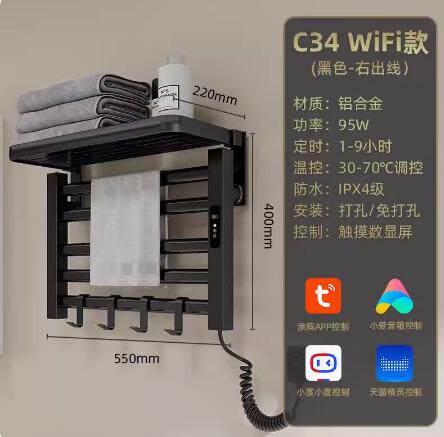 Электрическое отопление стойки для полотенец Домохозяйство Интеллектуальная постоянная температурная сушка сушки для ванной комнаты Электрическое отопление полотенце ленты бесплатная полка