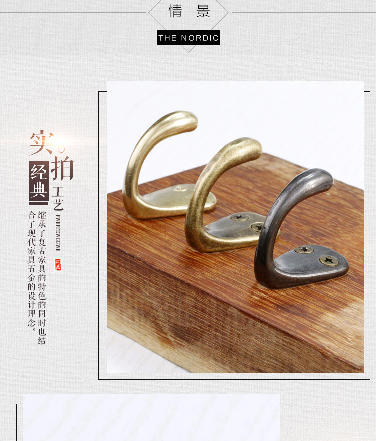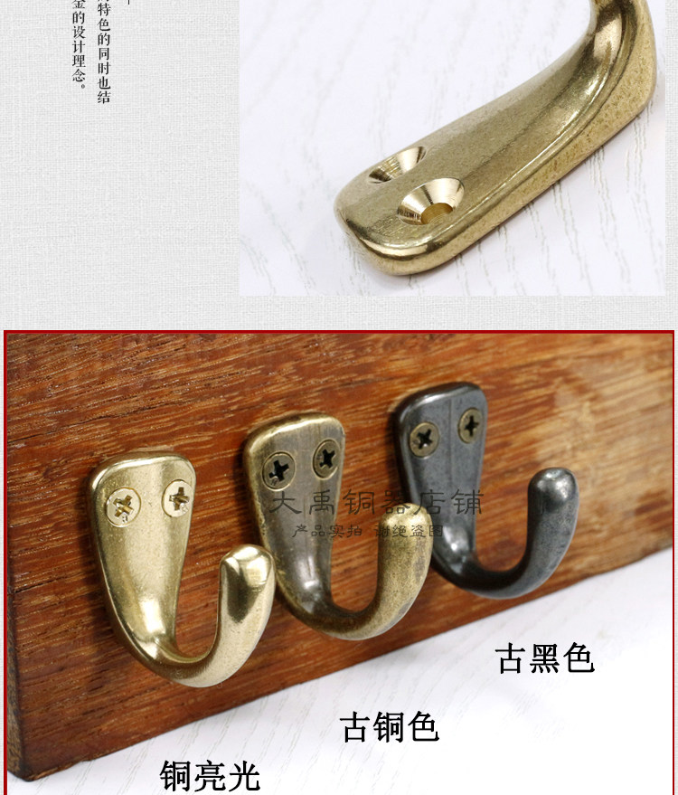 Чистое медное пальто крюк Стена Стена Стена одно пальто крючок ретро творческий крючок одежды в дверь и имитировать бронзовый крючок