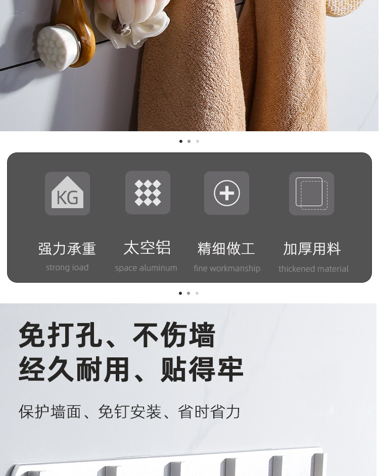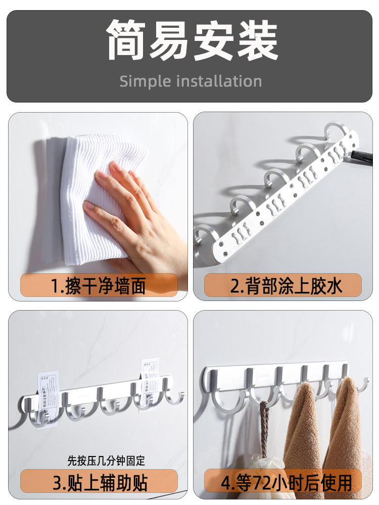 Космический алюминиевый крюк без туалетных отверстий в стене сильной нагрузки -носило полотенце ванной комнаты