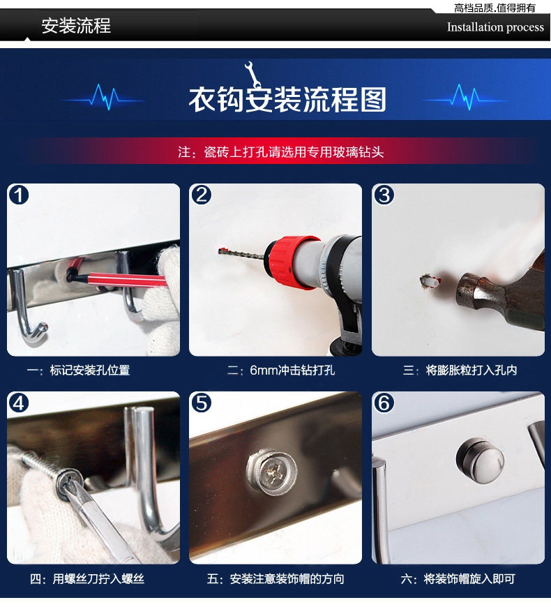 Туалетные полотенца, одежда, одежда, крючок, крючок, кухонный крючок, стена крючка из нержавеющей стали, кухонный крючок