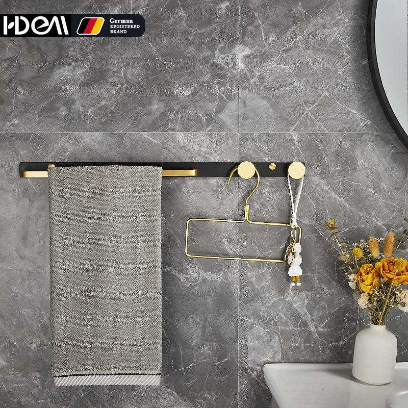 Светло -роскошное черное золото может быть без ногтей в ванной комнате и крючках, стенами для ванной комнаты, крючками, крючками