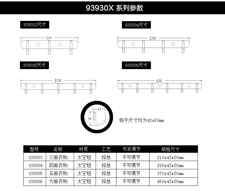 Jiu mu ванная комната персонаж крючок крючок алюминиевый крючок крючок крючок подвесной крючок для полотенца 939303/939304/939305