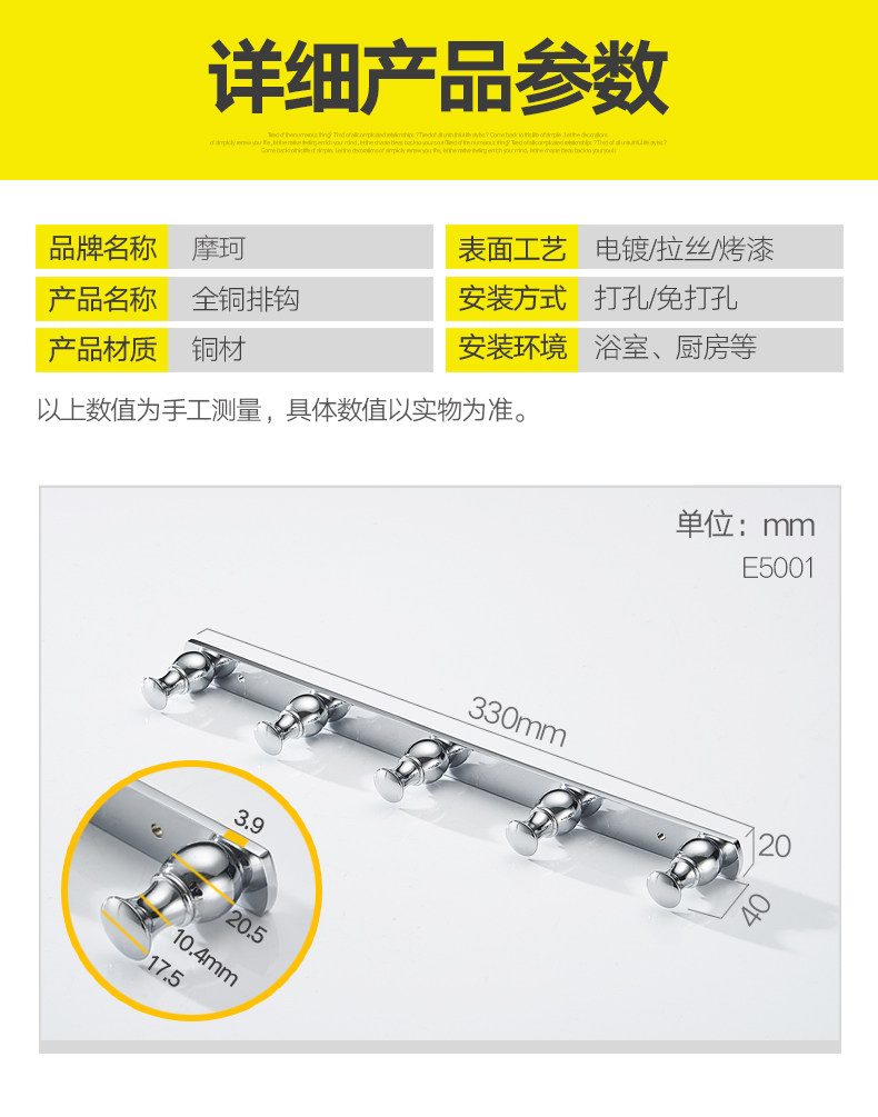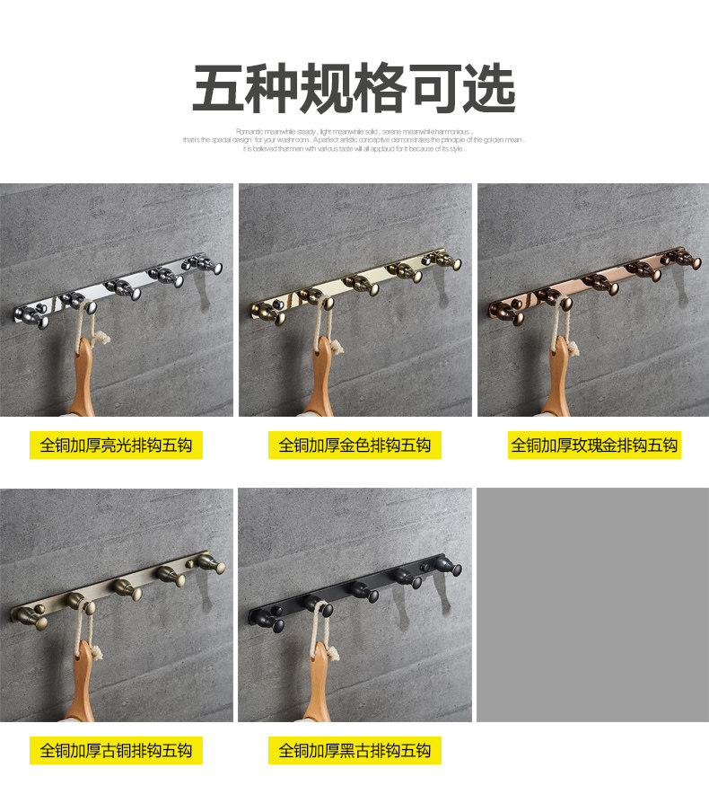 Полные медные крючки, чтобы избежать удара одежды, пальто, пальто, ванная кухонная дверь отеля, стена, крючок для ванной комнаты