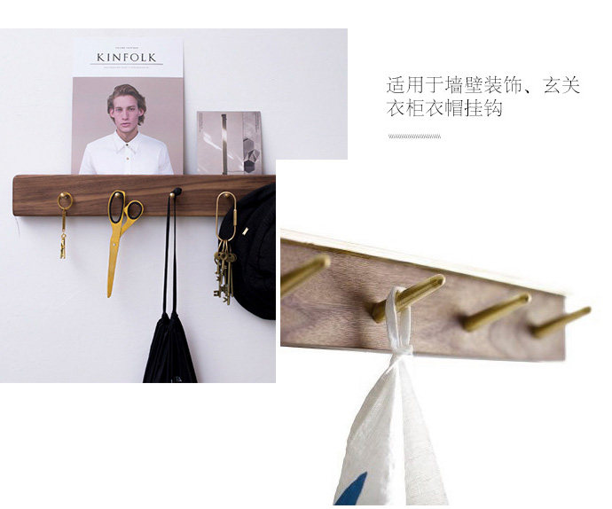 Японский стиль чистый медный крючок крючок Hyundai простой черный орех -все -ток для крючка настенная стена висящая настенная вешалка