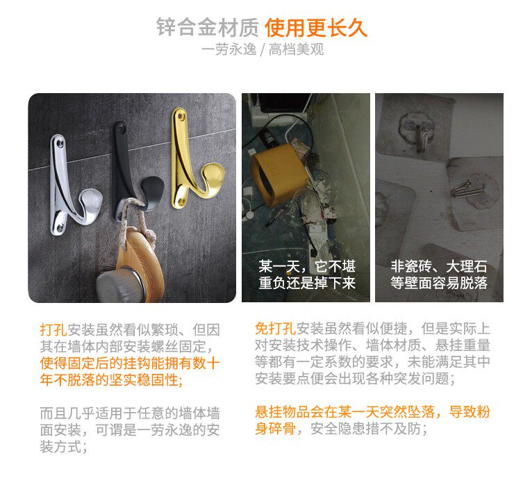 Твердый крючок для одежды из нержавеющей стали, крючок для одежды на стене, входной двери в ванной комнате без дырокола, одинарный крючок из цинкового сплава