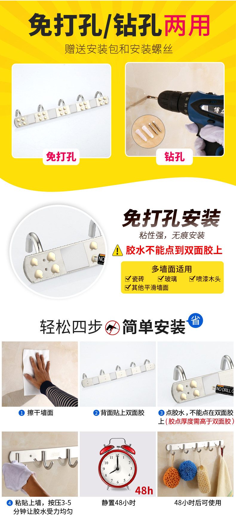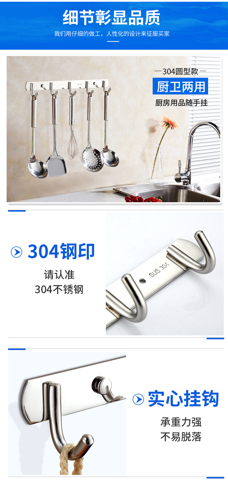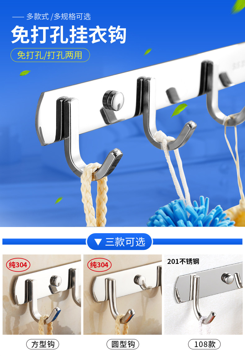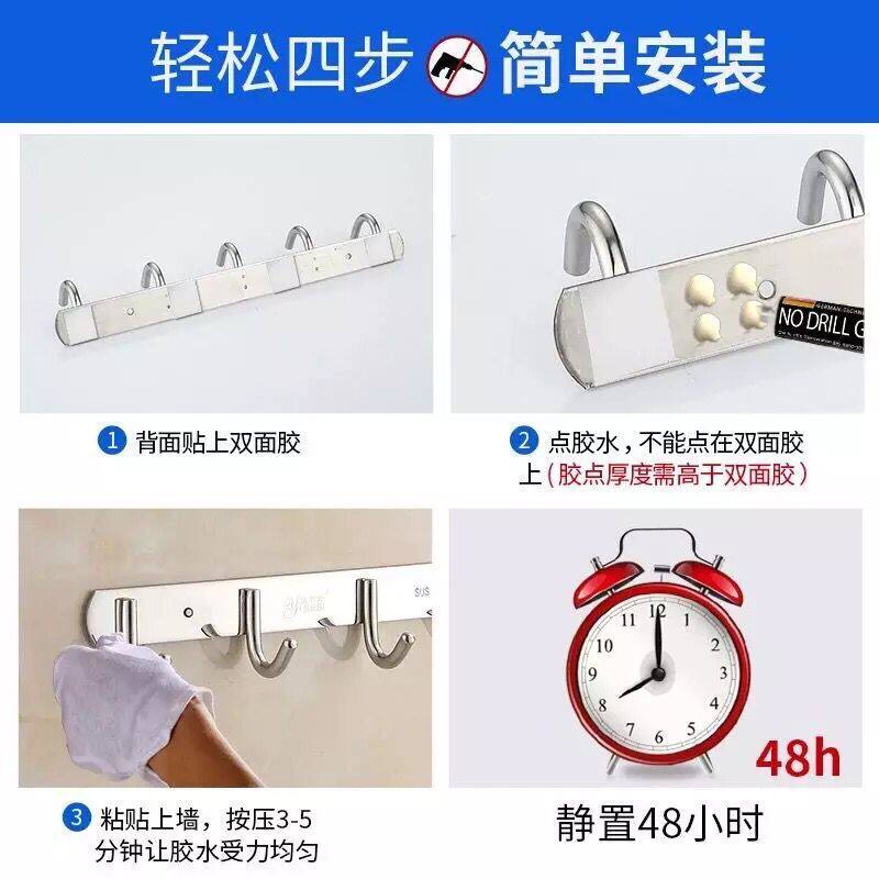 Стена крючка висящая подвесная вешалка прочный липкий клей кухня из нержавеющей стали Бесплатный удар полотенец.
