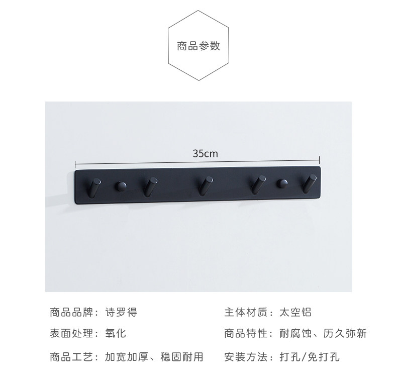Северная минималистская черная одежда крюк крюк Стена Ванная Ванная комната Бесплатная Панч Космос Алюминиевый испытательный зал Дверной крючок