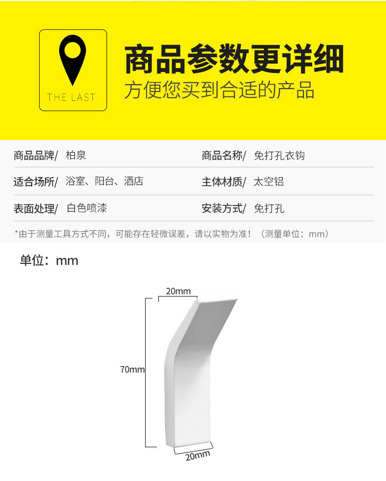 Простая скандинавская анти -пеловая белая белая космическая алюминиевая крюк