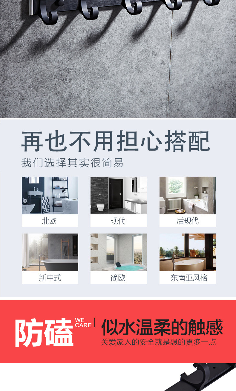 Космическая алюминиевая ванная комната подвесная одежда крючок крюк с пятью одеждой для ванной комнаты ванная комната ванная комната подвеска черная черная