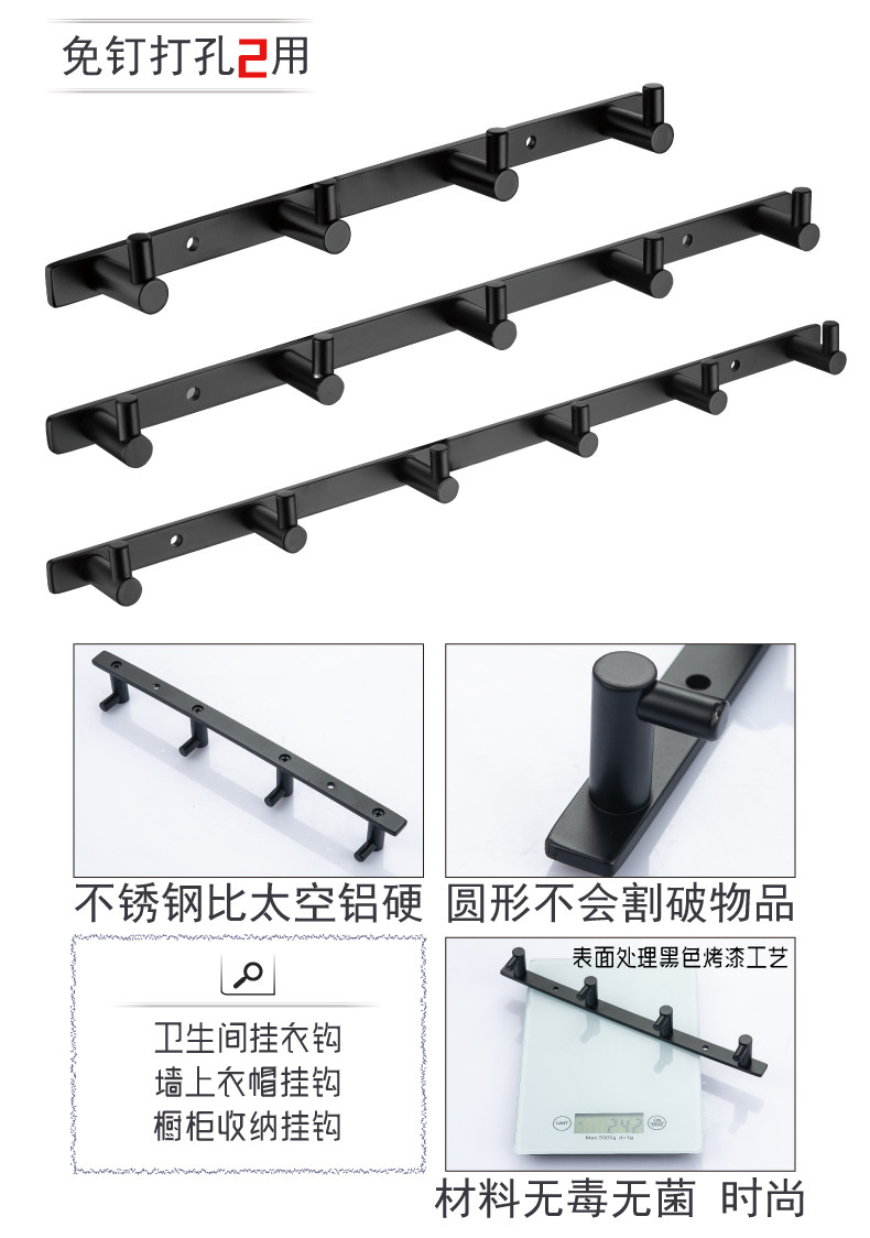 Черная ванная крюк из нержавеющей стали туалетная стена Бесплатная удара полотенце крюк на стене плащ