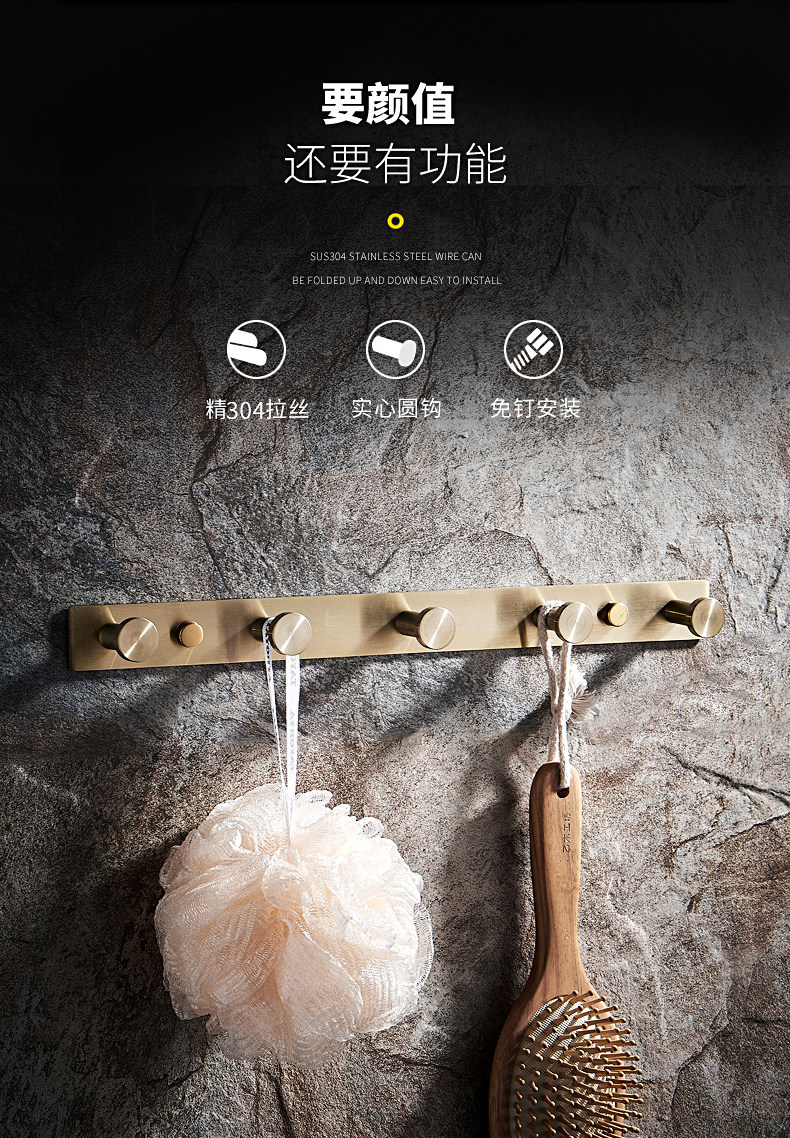 Золотая пальто крюк -стена -Стена туалета без туалетов Бесплатная нордическая спальня 304 Связь полотенца из нержавеющей стали.