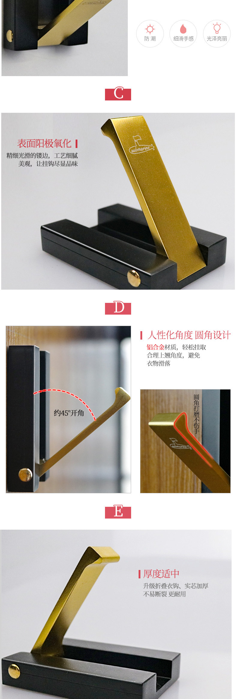 Подводная лодка подвесная одежда крючок -безжилочный слой крючок крюк