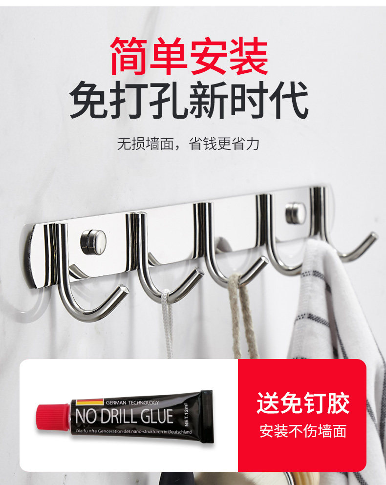 304 Отеряющая сталь крюк крюк крюк кухня бесплатная точка стена стена получает верхнюю одежду для туалета полотенце полотенце