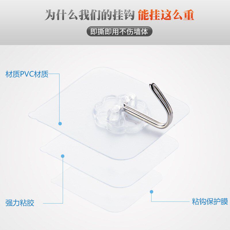 Кухня -без крючка -без крючка для ногтя, прозрачная и мощная нагрузка -настенная настенная настенная настенный крючок в ванной комнате бесплатно переносить липкий крюк
