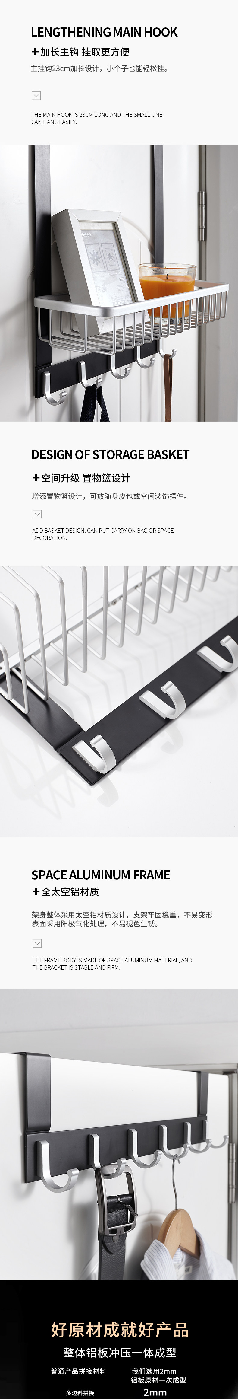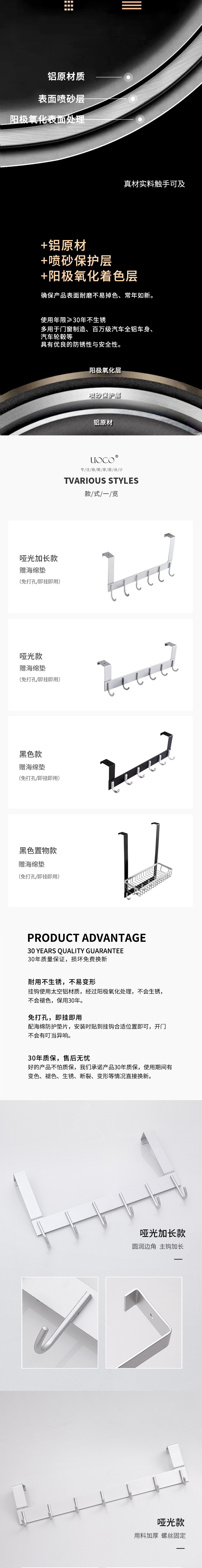 Uoco -Бесплатный пробирки пространство алюминиевый подвесной дверной крюк за задней частью вешалки без трассировки творческий бесплатный крючок для ногтей.