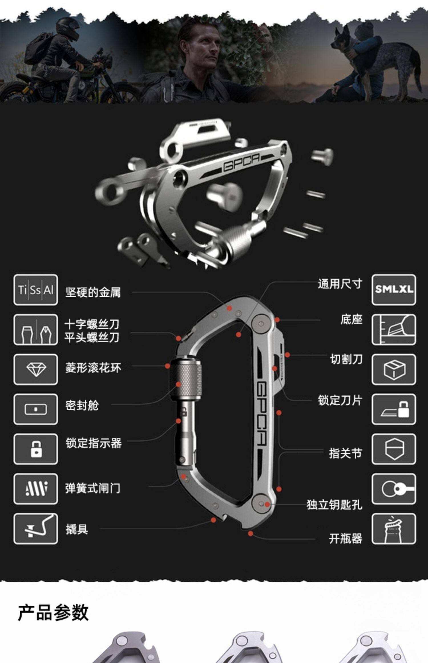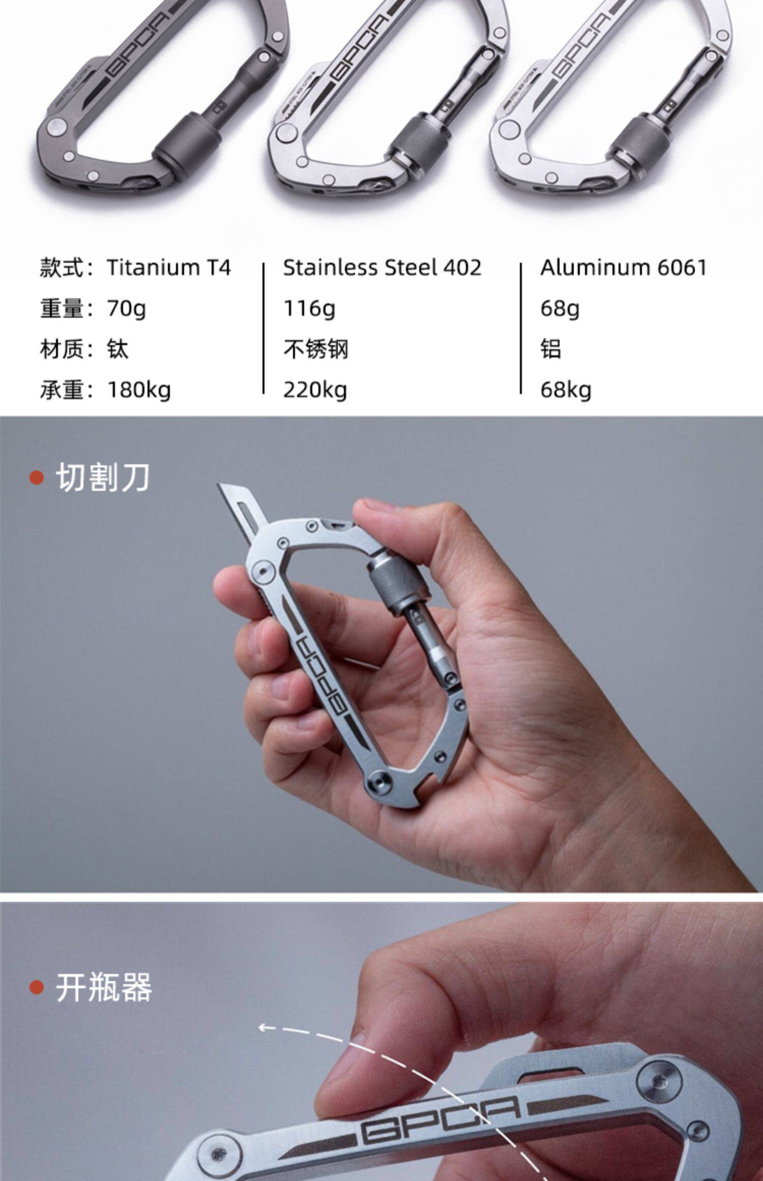Карабинер GPCA Многоофункциональный подъем для брелок для брелок для ключей для ключей для клавиши открытый ключ -чат