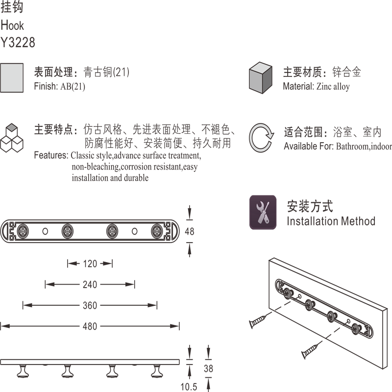 Yajie hardware крючок крюк, висящая стена y3228, висящая одежда для ванной комнаты санкси