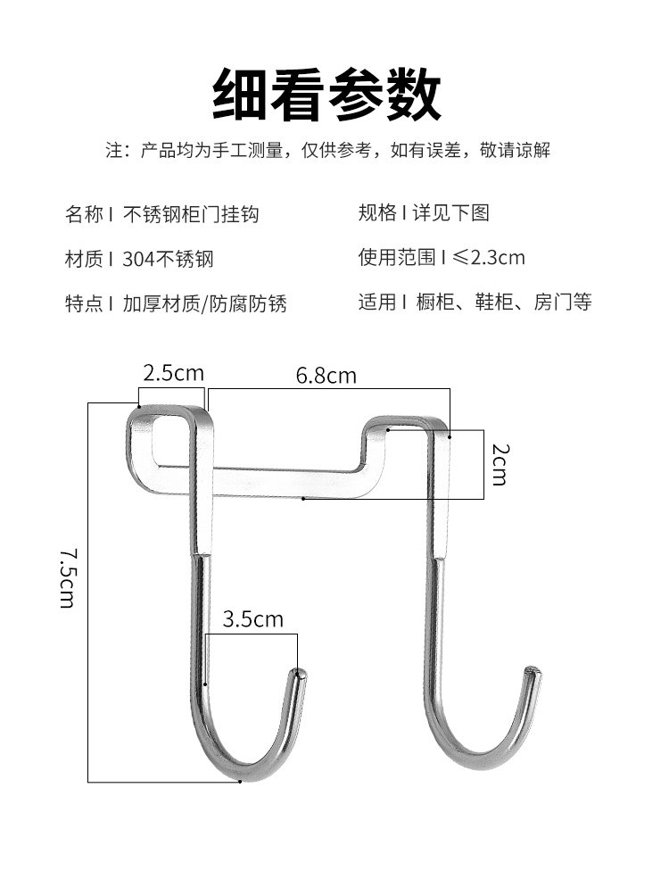 Нержавеющая сталь 304 -Беспокойный шкаф дверной крючок крючок крюк S -образа