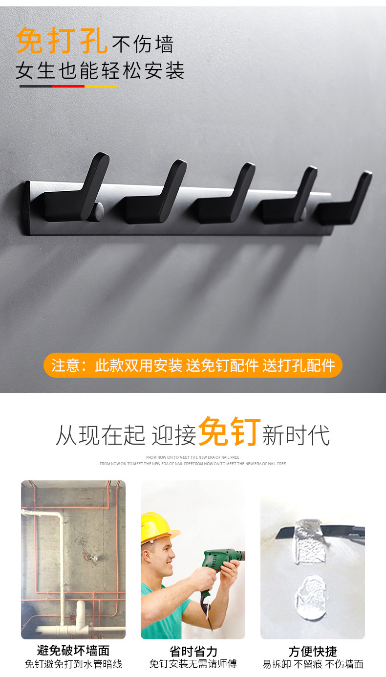 Космический алюминиевый крюк туалетная стена -Без пунша -Бесплатная одежда для тестовой одежды