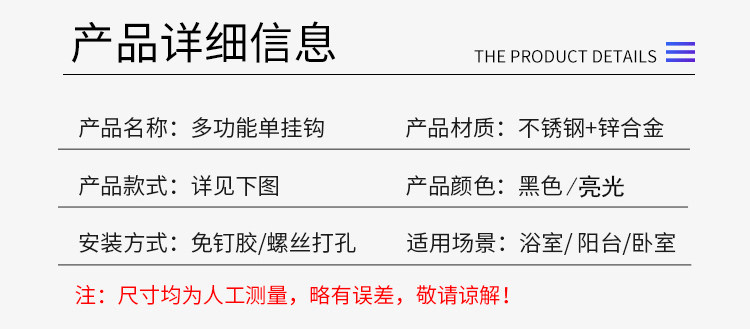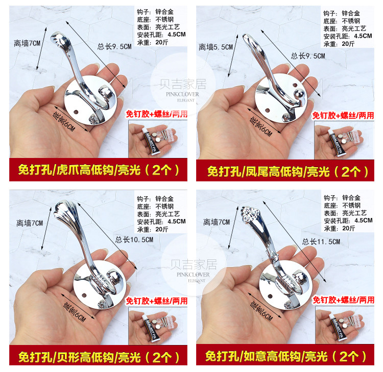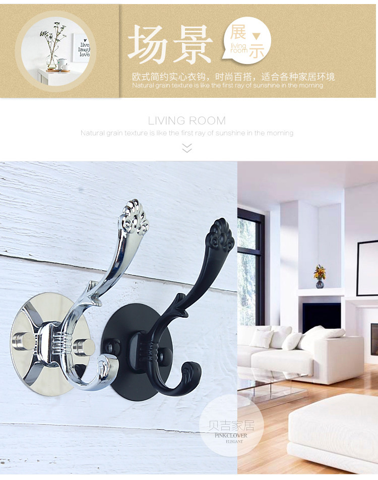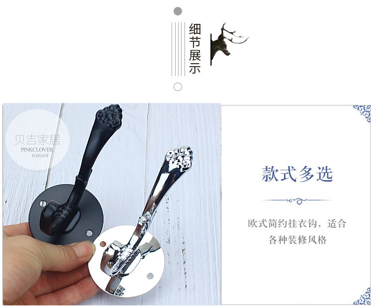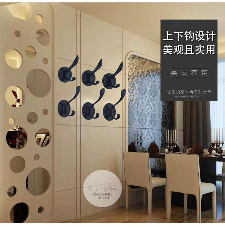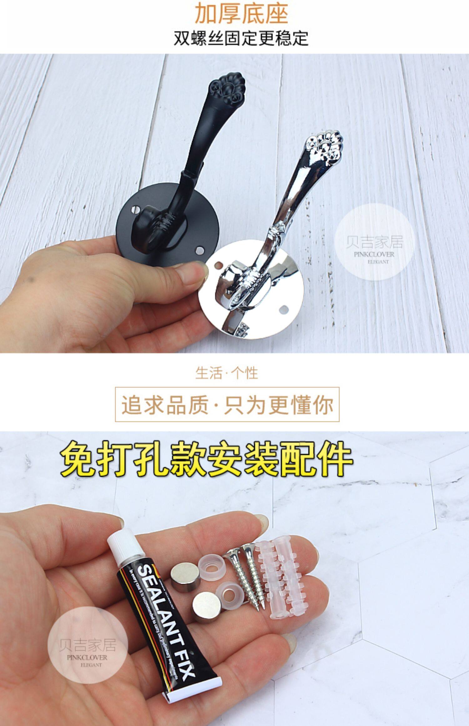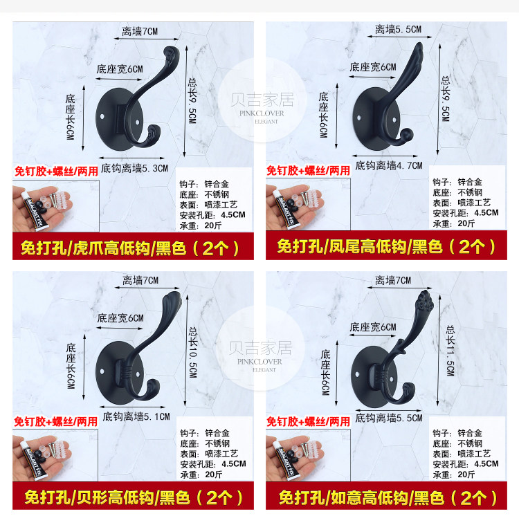Без отверстия -Бесплатный черный крюк крюк Стена Стена Дверь Дверь висят крючок для одежды европейский стиль