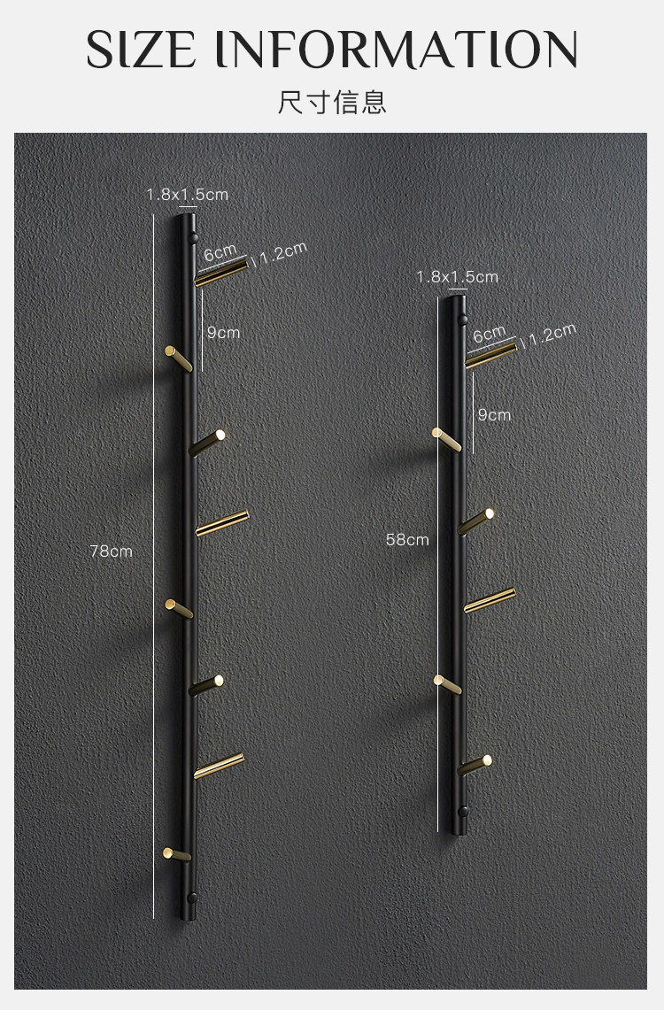 Laer Wall -Mounted Cloak Rack Creative Nordic All -Bronze с твердым черным золотом стойка для хранения шрифта